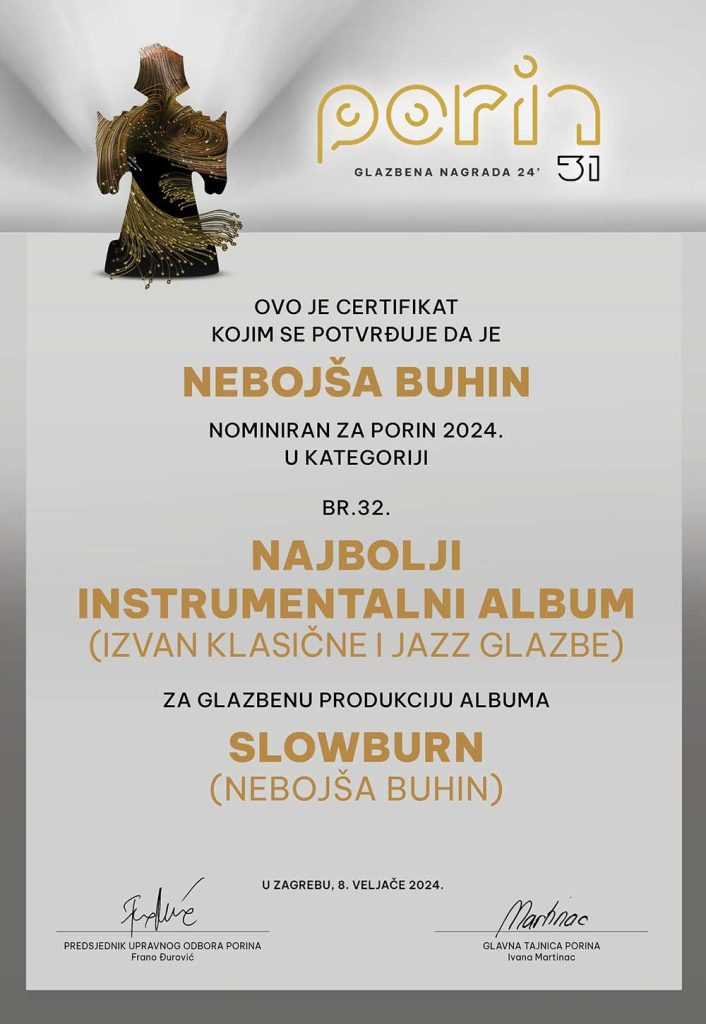 Gitarist i skladatelj Nebojša Buhin – Nebo objavljuje novi instrumentalni album “Now” za diskografsku kuću Nota Bene Records.